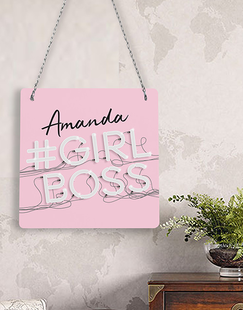 Hamperlicious can send out all through South Africa straight to the recipient’s door! Get this Personalised Girl Boss Metal Sign delivered with us today.
